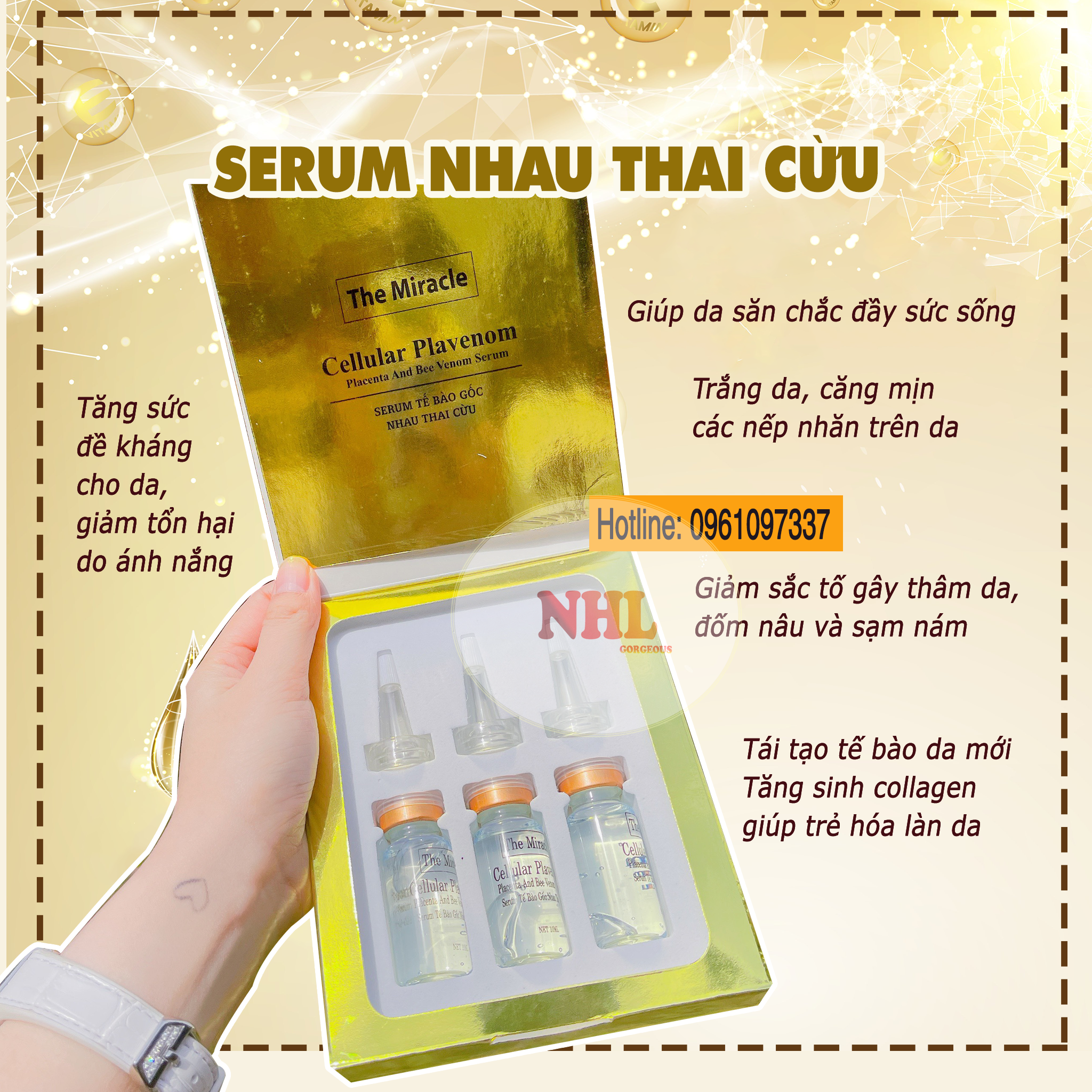 SERUM được sản xuất với các nguyên liệu chiết xuất từ nhau thai cừu, collagen,.. mang đến khả năng dưỡng da sáng mịn, chống nhăn da.